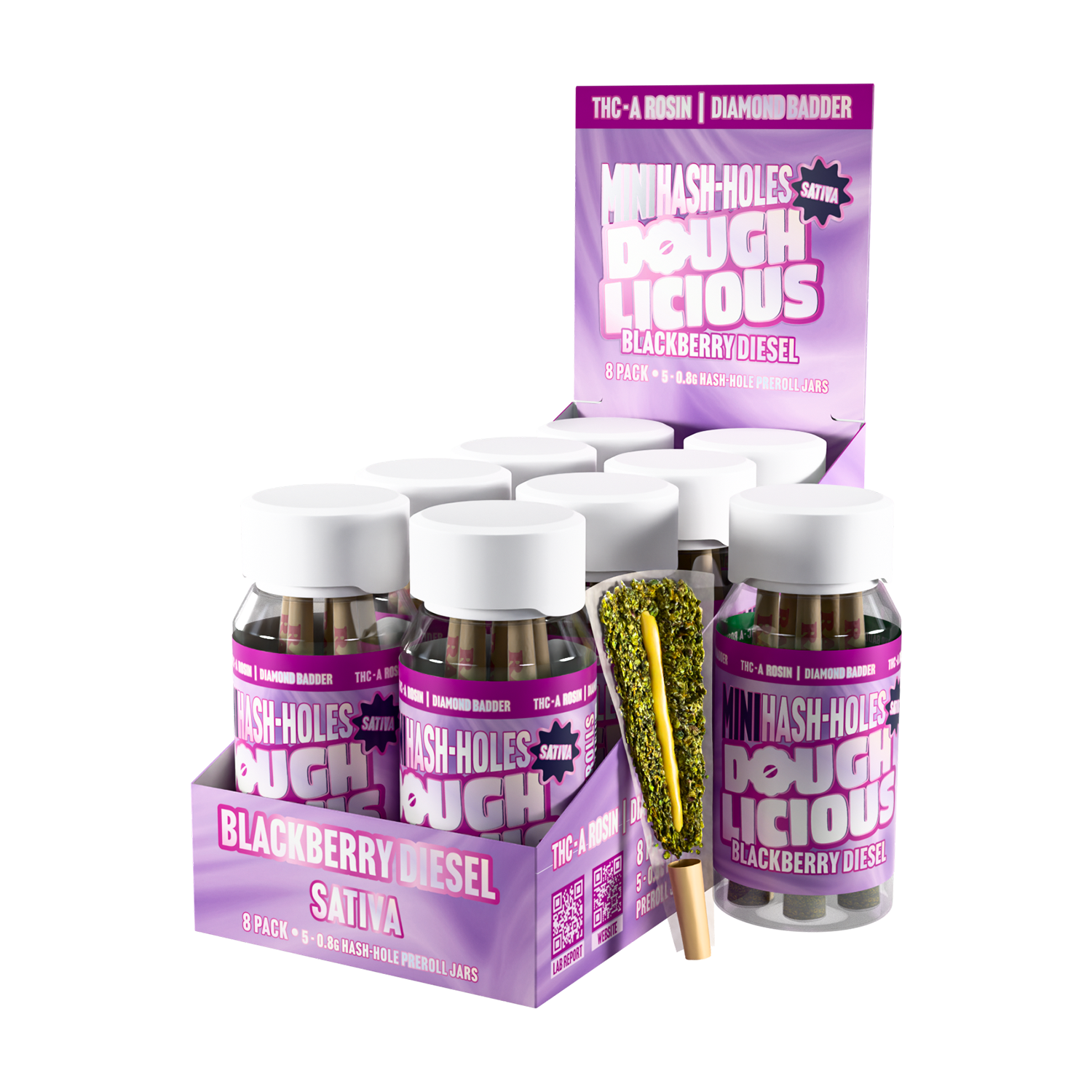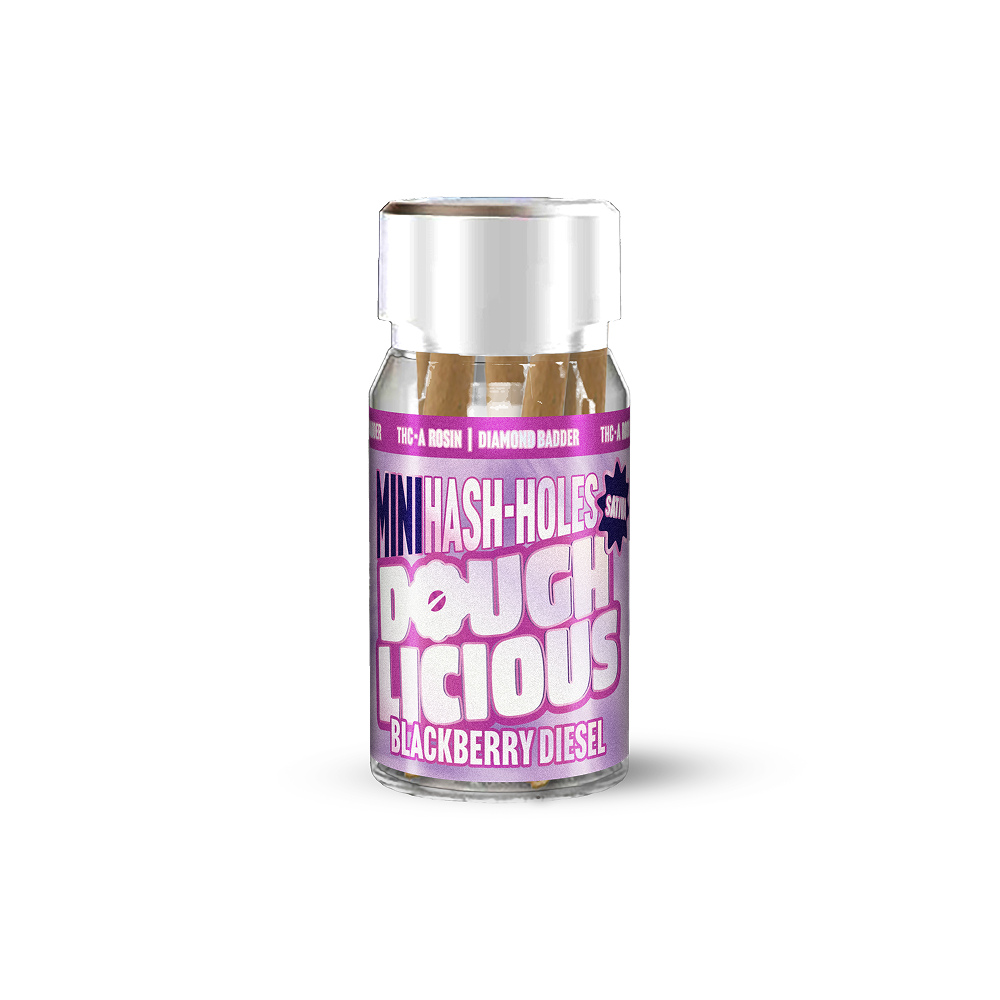 A potent fusion of sweet blackberry and gassy diesel. Each 0.8g pre-roll is infused with THCA Rosin and Diamond Badder, creating a slow-burning hash hole experience that’s bold, juicy, and euphorically smooth.