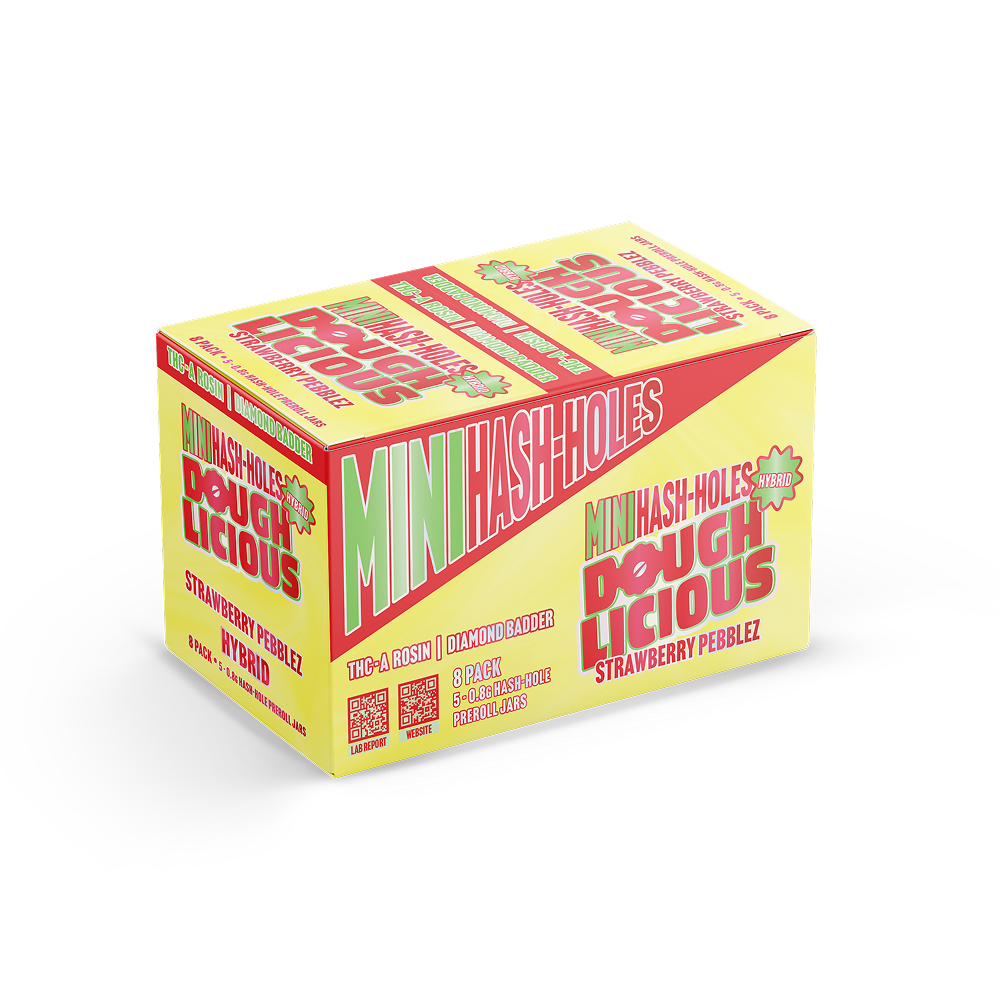 Bursting with strawberry cream and fruit cereal notes. Each 0.8g pre-roll is infused with THCA Rosin and Diamond Badder, creating a slow-burning hash hole experience that’s bold, juicy, and euphorically smooth.