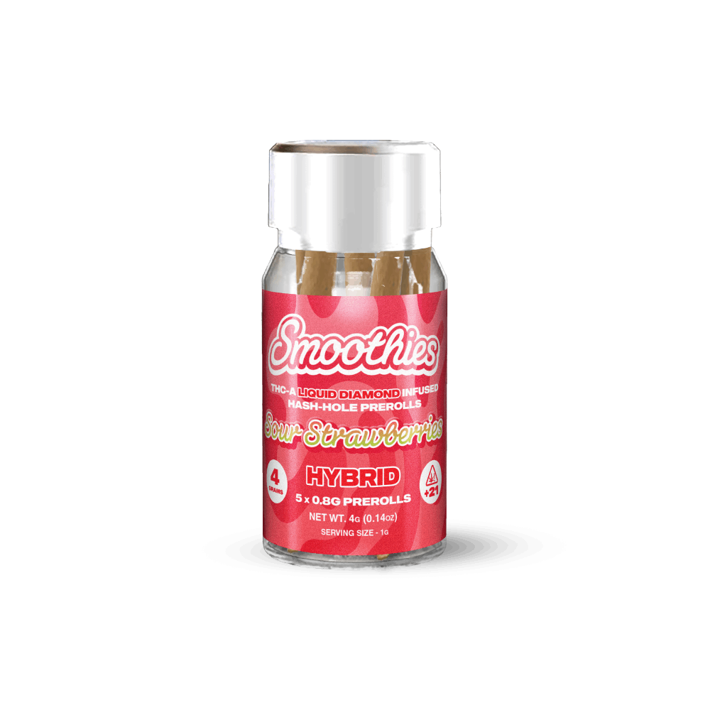 Sharp strawberry tartness lifted by a zesty, mouthwatering edge. Each 0.8g mini pre-roll is infused with THCA Real Liquid Diamonds, enjoy a slow-burning hash-hole experience that’s fruity, terp-rich, and ultra-potent.